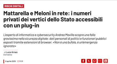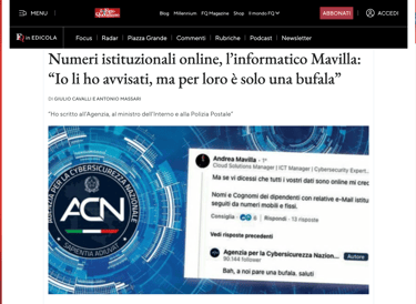 DMI Solution, società specializzata in cybersecurity, Threat Intelligence e Web Reputation, è apparsa su numerose testate giornalistiche nazionali e internazionali insieme al proprio esperto Andrea Mavilla, per le scoperte riguardanti gravi vulnerabilità nei sistemi di sicurezza informatica italiani.