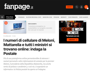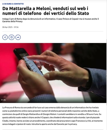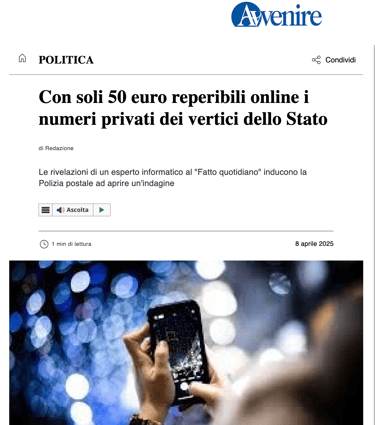 Le segnalazioni hanno portato all’intervento del COPASIR, del Garante per la Privacy, della Polizia Postale e della Procura di Roma, confermando l’impatto nazionale delle indagini.